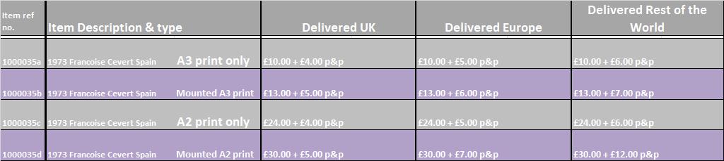 A3 (41 x 29.5 cm) are priced at £12.00 + carriage at cost, and are an open run of prints, unsigned.
